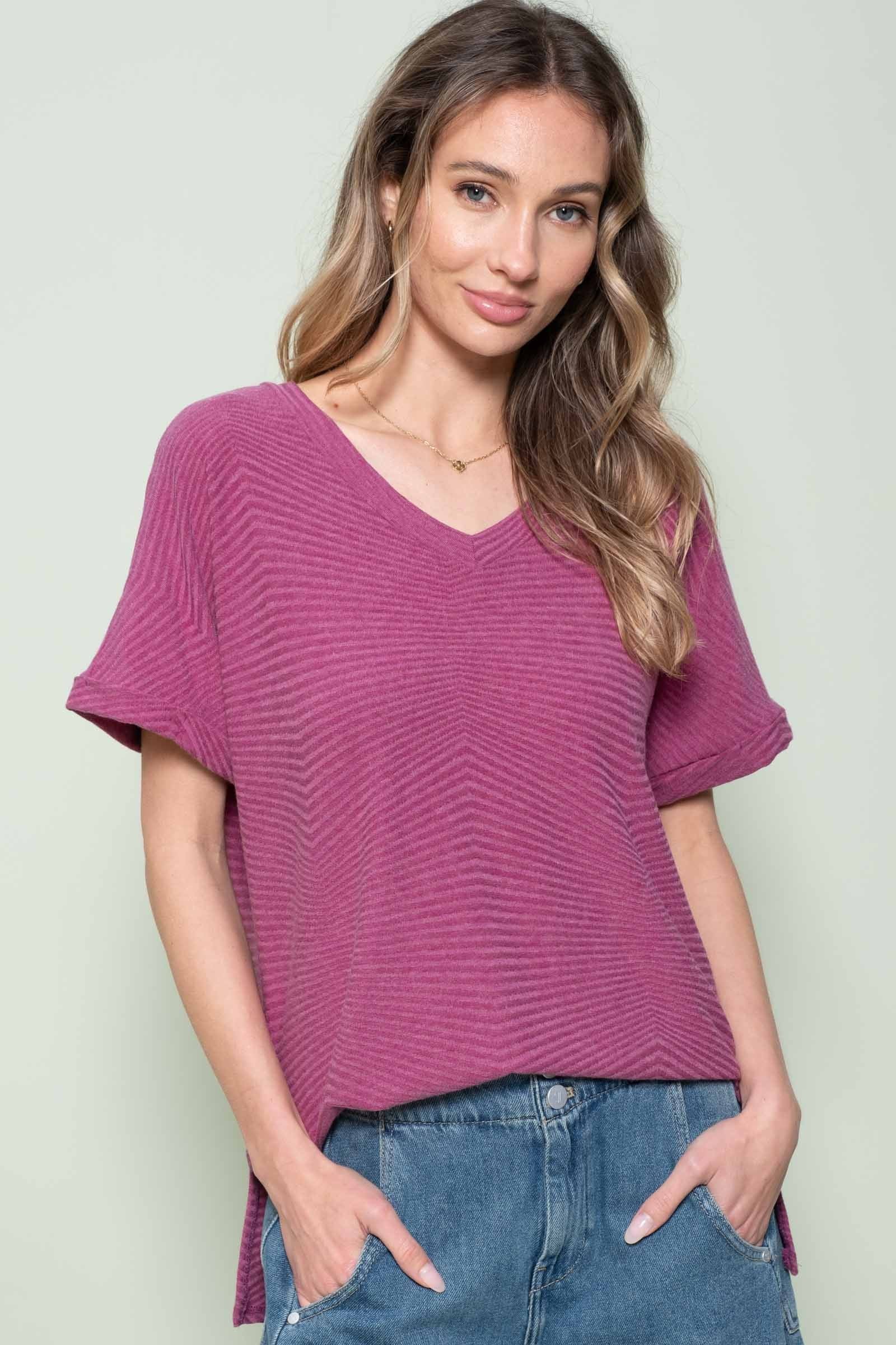 * V-neckline * Sleeve rolled up and stitched * Slit on the side * Pintuck on the back yoke POLYESTER 78%, RAYON 18%, SPANDEX 4%