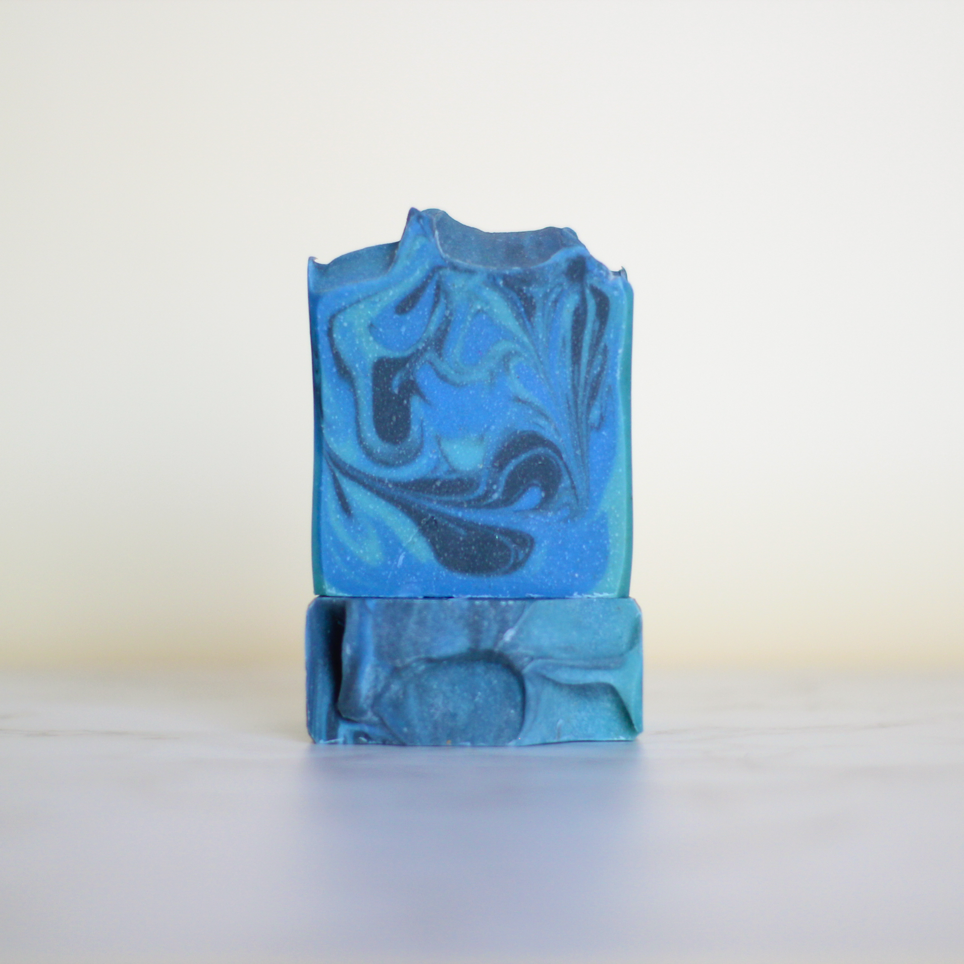 This soap has a scent of sea salt, ozone, cardamom, and deep amber.