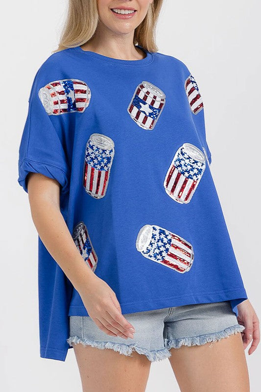 SHORT SLEEVE HIGH-LOW GRAPHIC PATRIOTIC SHIRT 100% Cotton. Hand Wash. Made in China. Model is wearing size small Length: 27" Bust: 62" Waist: 31".